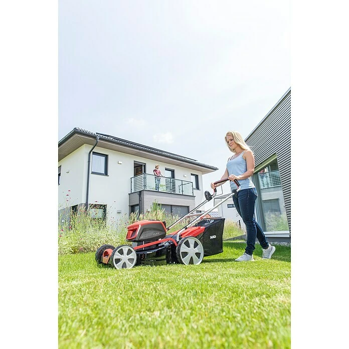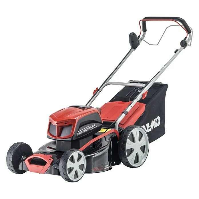 Kabellose Kraftpakete mit innovativer Lithium-Ionen-Technologie: Das sind die Akku-Rasenmäher von AL-KO aus der AL-KO ENERGY FLEX Akkufamilie. – Der AL-KO Akku-Rasenmäher 46.9 Li SP – Das Kompaktmodell von AL-KO überzeugt durch sein robustes Gehäuse aus Stahlblech. Dank innovativer Komponenten wie dem Lithium-Ionen-Akku mit Ladestandanzeige, sowie großer Schnittbreite und Radantrieb ist der AL-KO 46.9 Li SP ihr emissionsfreier Helfer für Ihren Garten. Mulchmähen optional möglich. – Technische Details des AL-KO 46.9 Li SP – Sicheres Starten dank Steckschlüssel. Der 36-Volt-Lithium-Ionen-Akku sorgt für ein effizientes Arbeiten auf Rasenflächen mit bis zu 500 m². Dank der Li-Ion-Zellen ist dieser Akku außergewöhnlich langlebig und hat keine Selbstentladung. Durch die integrierte LED-Anzeige können Sie ganz einfach ablesen, wann aufgeladen werden muss. Aufgeladen ist der Akku in ca. 1,5 Stunden. Bequeme zentrale Schnitthöhenverstellung, bei der die Schnitthöhe zwischen 30 und 75 mm einstellbar ist. Die große Gewebefangbox mit Füllstandsanzeige fasst 60 l und wird dank der aerodynamischen Gehäuseform effektiv gefüllt. Der ergonomische Führungsholm und die kugelgelagerten Räder ermöglichen Ihnen ein ermüdungsarmes Rasenmähen. – Der Akku ist passend für alle Geräte der AL-KO ENERGY FLEX Familie.