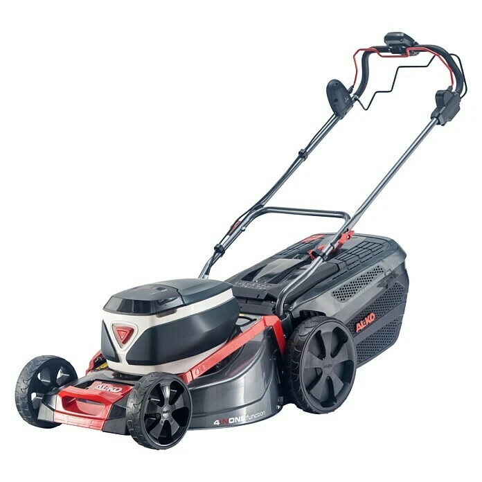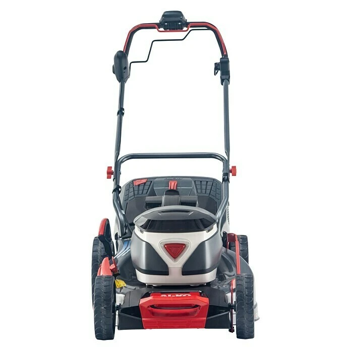 Neues Smart Cockpit im AL-KO 36 V ENERGY FLEX Akku-Rasenmäher 512 Li VS-W Premium – Das smarte Modell in Premium-Ausführung von AL-KO bietet Ihnen eine komfortable Steuerung über das Smart Cockpit. Der AL-KO Rasenmäher 512 Li VS-W Premium wird in Deutschland entwickelt, produziert wird er in Österreich. Dank innovativer Komponenten wie dem Lithium-Ionen-Akku ist der AL-KO 512 Li VS-W Premium ein langfristiger Partner für Ihren Garten. – Rasenaktivitäten einfach ablesen mit dem Smart Cockpit – Über das maxRun & Smart Cockpit lassen Sie verschiedene Aktivitäten anzeigen wie z.B. Akkuladezustand, Konnektivität oder Fehlermeldungen. Auch kann über die diese Funktion die Geschwindigkeit reguliert, sowie mit der Eco-Mode Funktion der Energiesparmodus aktiviert, werden. Durch die Smart-Button Funktion signalisiert die blaue Leuchte, dass eine Verbindung zur Ihrer AL-KO inTouch App aufgebaut wurde. Ebenso lässt sich über diesen Button der Ladezustand der Akkus farblich ablesen. Grünes Leuchten bedeutet vollständig aufgeladen. Rot signalisiert, dass der Akku aufgeladen werden sollte. – Der 36-Volt-Lithium-Ionen-Akku sorgt für ein effizientes Arbeiten auf Rasenflächen bis 500 – 1000 m². Dank der Li-Ion-Zellen ist dieser Akku außergewöhnlich langlebig und hat keine Selbstentladung. Aufgeladen ist der Akku in 120 min. Komfortable 7-fache, zentrale Schnitthöhenverstellung bei der die Schnitthöhe zwischen 30 und 80 mm einstellbar ist. Die große Fangbox mit Füllstandsanzeige fasst 70 l und wird dank der aerodynamischen Gehäuseform effektiv gefüllt. Der ergonomische Führungsholm und die kugelgelagerten Räder ermöglichen Ihnen ein ermüdungsarmes Rasenmähen. Für effektives Rasenmäher sorgen die 51 cm Schnittbreite sowie der kraftsparende Vario-Radantrieb. Inkl. Mulchkeil und Seitenauswurffunktion. – 1x Akku 36 V (5,0 Ah) und Ladegerät enthalten. – Der Akku ist passend für alle Geräte der AL-KO ENERGY FLEX Familie.