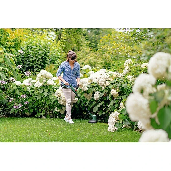 Der Bosch Akku-Rasentrimmer EasyGrassCut 18V-230 ist ideal geeignet zum Trimmen, Kantenschneiden oder Ausputzen unter Gartenmöbeln und Büschen. Dank dem ausgewogenen und leichten Design in Verbindung mit dem Zusatzhandgriff wird eine einfache Handhabung, besonders bei längerem Gebrauch, gewährleistet. Die halbautomatische Fadennachfüllung unterbindet Unterbrechungen und sorgt für eine optimale Scheidfadenlänge. Der Wechsel vom Trimmen zum Kantenschneiden erfolgt durch einen einfachen Schalterdruck und Drehen des Werkzeugs, ohne dass ein Bücken notwendig ist. Ob Bohren, Reinigen oder Gärtnern – schneller und einfacher Wechsel zwischen verschiedenen Geräten mit dem 18 V POWER FOR ALL Akku von Bosch.