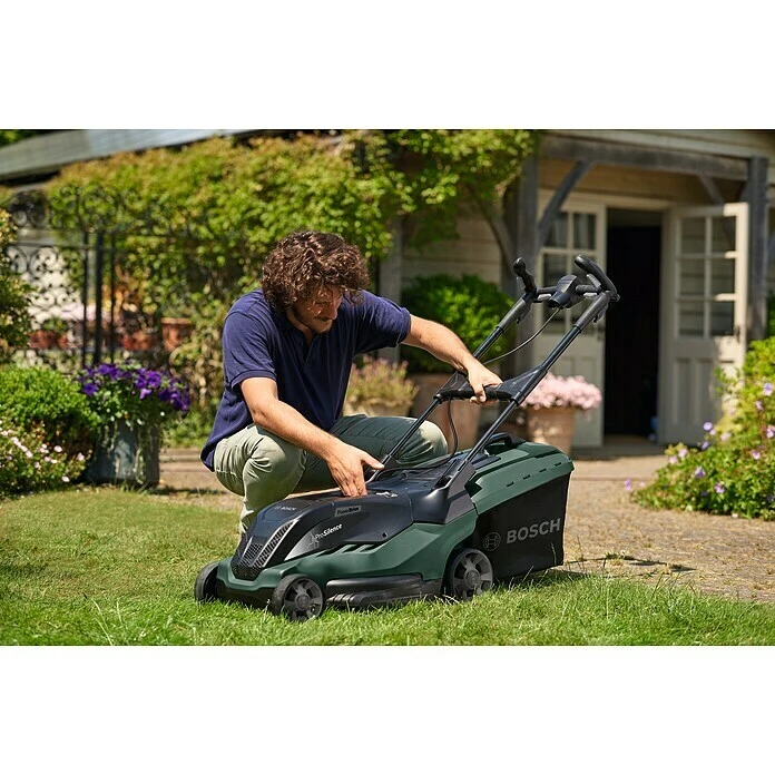 Der vielseitig einsetzbare Elektro-Rasenmäher Advanced Rotak 750 von Bosch bietet ausgezeichnete Ergebnisse und ein einfaches, komfortables Mähen auf Rasenflächen bis zu 750 m². Die ProSilence-Funktion reduziert die Geräuschemissionen um bis zu 75% und filtert unangenehme Geräusche heraus. Seine Schnitthöhe lässt sich bequem per Knopfdruck in 7 Stufen zwischen 25 und 80 mm an die Graslänge anpassen. Das spezielle LeafCollect-Messer des Rotaks kann zum perfekten Rasenmähen oder zum Aufnehmen und Häckseln von Laub verwendet werden. Der ErgoSlide-Holm sorgt für ein komfortables Mähen.