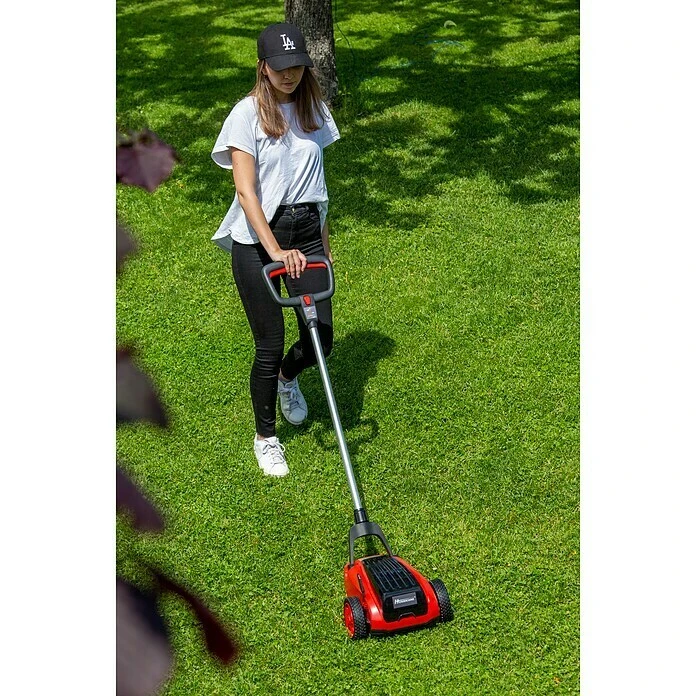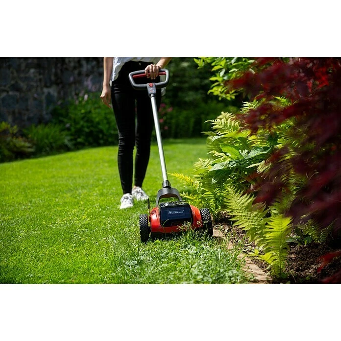 Der Akku-Einhandrasenmäher HHM-I-20 Hurricane für kleine Flächen bis 50m² ist mit einem langlebigen, verschleißarmen, bürstenlosen Motor ausgestattet. Durch den schwenkbaren Griff ist ein einfaches Mähen z.B. unter Sträuchern, Bänken und Trampolin gewährleistet. Die Schnittbreite beträgt 21 cm. Eine zentrale Schnitthöhenverstellung in 3 Stufen (25-48 mm) ist möglich. Die Laufzeit beträgt bis zu 30 Minuten. Die Ladezeit des Akku -Einhandrasenmäher HHM-I-20 beträgt ca. 1 Std. Im Lieferumfang ist der 20 V/ 2 Ah Akku und ein Ladegerät mit 2 A enthalten. Zur platzsparenden Aufbewahrung kann der Mäher an einer Wand aufgehängt werden. Eine Wandhalterung ist nicht im Lieferumfang enthalten.