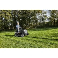 Der Benzin-Rasenmäher LM4602G von Hyundai mit einer Leistung von 2,6 kW (entspricht ca. 3,38 PS) und einer Schnittbreite von 46 cm eignet sich für Rasenflächen bis zu 1.200 qm. Dank seinem pulverbeschichtetem und korrosionsgeschützten Stahlblechgehäuse hält er auch den härtesten Beanspruchungen stand. Ausgestattet mit großen, rasenschonenden und doppelt kugelgelagerten Rädern lässt er sich in unebenen Geländen problemlos manövrieren. Der Frontbumper schützt dabei den Rasenmäher sowie auch seine Umgebung. Der sparsame 4-Takt HYUNDAI Motor ist kraftvoll, leise und zuverlässig. Die Füllstandsanzeige an dem großen 65L Fangkorb hilft Ihnen zu erkennen, wann der Fangkorb geleert werden sollte. Ein praktischer Fronttragegriff unterstützt beim Transportieren und Aufbewahren. Reinigen lässt sich der Benzin-Rasenmäher durch seinen integrierten Wasseranschluss einfach und schnell nach dem Mähen. Der Rasenmäher kann auch als Mulcher verwendet werden. Ein passender Mulchkeil ist im Lieferumfang enthalten.
