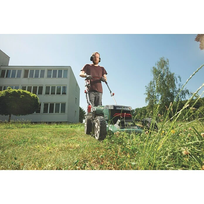 Der leise Akku-Rasenmäher zum effizienten Mähen, Sammeln und Mulchen von Grundstücken bis 800 m². Das Mähgut wird optional hinten ausgeworfen, im flexiblen Fangsack gesammelt oder sofort gemulcht. Der starke Brushless-Motor garantiert hohe Schnittperformance und lange Laufzeit pro Akkuladung. Die automatische Anpassung der Motorleistung je nach Grashöhe sorgt für maximale Akku-Laufzeiten. Die einfach bedienbare Schnitthöheneinstellung kann zentral in 7 Stufen eingestellt werden. Die Leichtlaufräder und der höhenverstellbare Schiebebügel mit gummiertem Griffbereich vereinfachen das Lenken und Spurhalten. Robust und langlebig dank Metalldeck und hochwertigem Sichelmesser. Doppelter Schutz vor unbeabsichtigtem Starten durch Sicherheitsschlüssel und Sicherheitsschalter. Einfacher Transport und platzsparende Lagerung durch Tragegriffe und zweifach klappbaren Bügel. Gut sichtbare Kapazitätsanzeige zur Kontrolle des Akku-Ladezustandes. Umweltfreundlich und leise durch Akkubetrieb, dadurch auch in lärmsensiblen Bereichen einsetzbar. 100% Kompatibilität zur 18-Volt-Klasse: kraftvoller 36-Volt-Betrieb mit zwei 18-Volt-Akkupacks von Metabo. Kombinierbar mit allen 18V-Akkupacks und Ladegeräten der CAS Marken: www.cordless-alliance-system.com.
