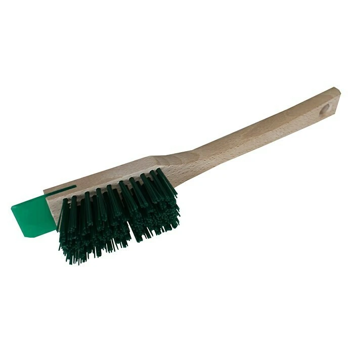 Die Rasenmäherbürste von Peggy Perfect besitzt eine Schabekante aus Kunststoff für groben Schmutz sowie starke Elaston-Borsten. Die Bürste befreit den Rasenmäher in einem Wisch von festhängendem Gras oder sonstigem Schmutz.