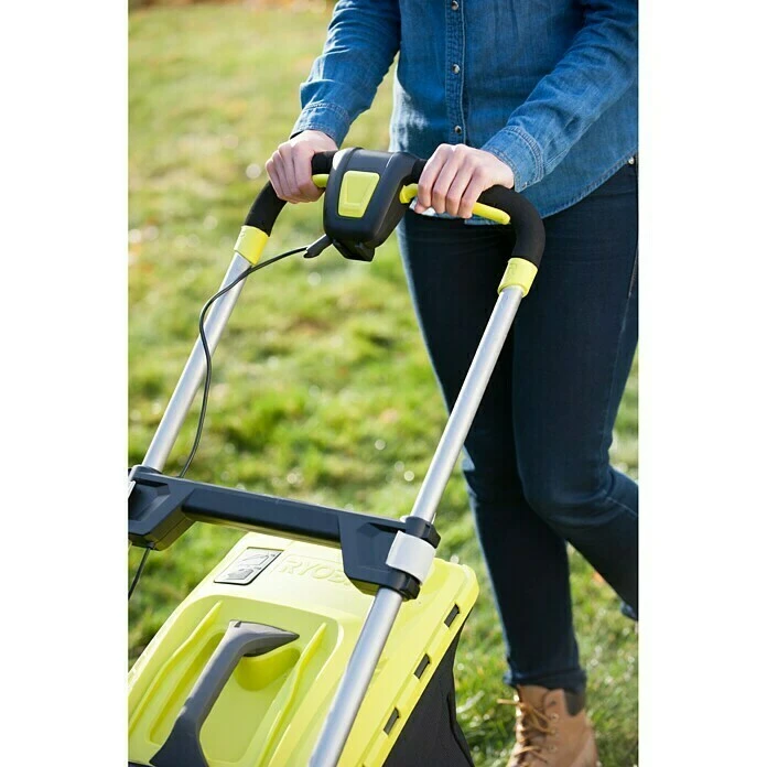 Der Ryobi Akku-Rasenmäher RLM36X41H40 mit einer Akkuleistung von 144 Wattstunden überzeugt durch seine 2 in 1 Funktion und die geringe Geräuschentwicklung. Eine Akkuladung des leistungsstarken Akkus reicht für etwa 600 m². Sowohl das Grasfangen als auch das Mulchen wird mit nur einem Gerät ermöglicht. Der Rasenmäher hat eine Schnittbreite von 40 cm und eine 5-fache, zentrale Schnitthöhenverstellung von 20 – 70 mm, die sich je nach Situation komfortabel verstellen lässt. Zum Produktumfang zählen weiterhin ein ergonomischer, höhenverstellbarer Komforthandgriff für eine bequeme Arbeitshaltung, der sich zur platzsparenden Aufbewahrung zusammenklappen lässt sowie kugelgelagerte Leichtlauf-Räder.